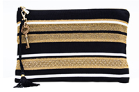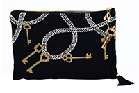 Bolsa de tricô e detalhe em passamanaria de seda e chave antiga na cor dourado e preto.